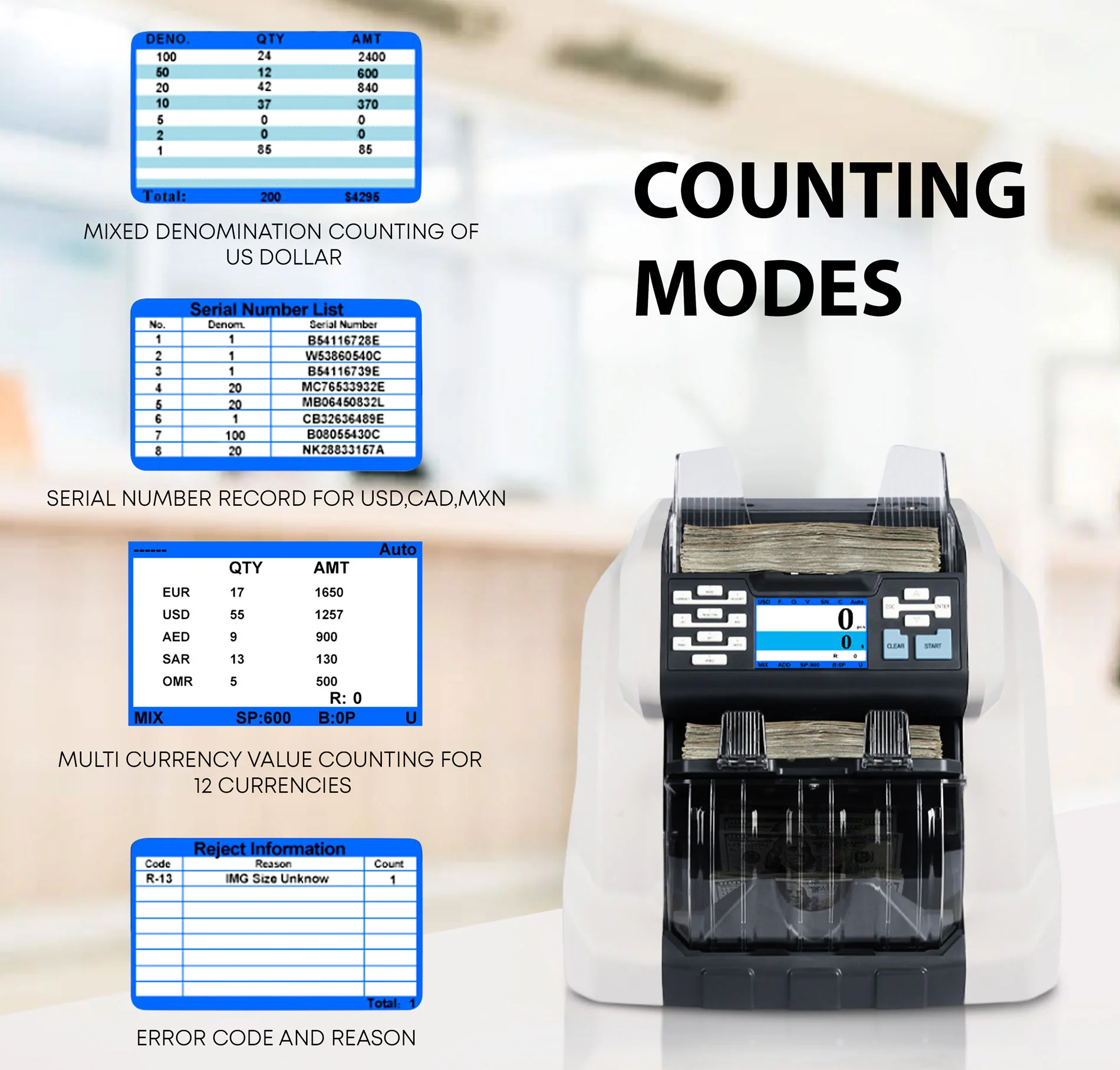 With advanced detection features and a high counting speed, streamline your cash handling process today.